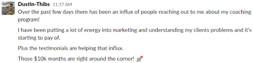 “Things started picking up and clicking. There was a shift in who I was being and in 6 months I made 6 figures. Now it just looks like unlimited growth. I’m consistently making 15 to 20k a month and I’m about to have a 40k month.”